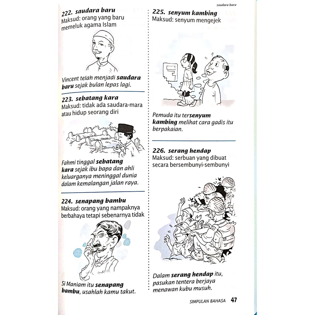 Peribahasa Bergambar-Edisi Terbaharu-Sesuai untuk Sekolah Rendah dan Menengah-32 halaman berwarna-Persembahan dalam dua dan empat warna-Gambar tunggal dan pasangan gambar. Bahagian ini menyediakan koleksi peribahasa bergambar serta maksudnya yang mudah difahami sebagai nota kepada murid-murid. Tuesday 9 October 2012 Simpulan Bahasa Bergambar Simpulan.